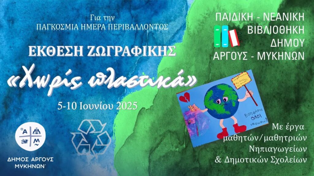 Πέμπτη 5 Ιουνίου 2025 – Με αφορμή την Παγκόσμια Ημέρα Περιβάλλοντος, η Παιδική – Νεανική Βιβλιοθήκη του Δήμου Άργους – Μυκηνών διοργανώνει μια υπέροχη εκδήλωση στο Πάρκο Μπόνη, αφιερωμένη στην προστασία του περιβάλλοντος.