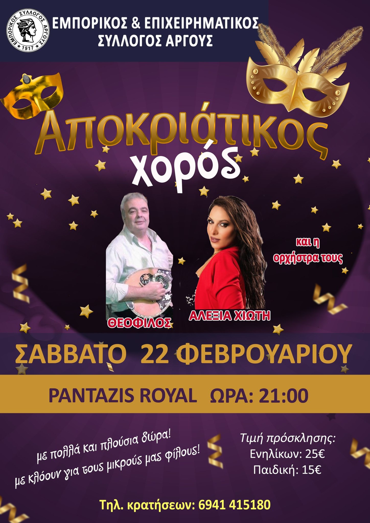 Το Σάββατο το βράδυ στις 22 Φεβρουαρίου στις 21:00 σας περιμένουμε στον Αποκριάτικο χορό μας στο Pantazis Royal όπως και να είσαστε.