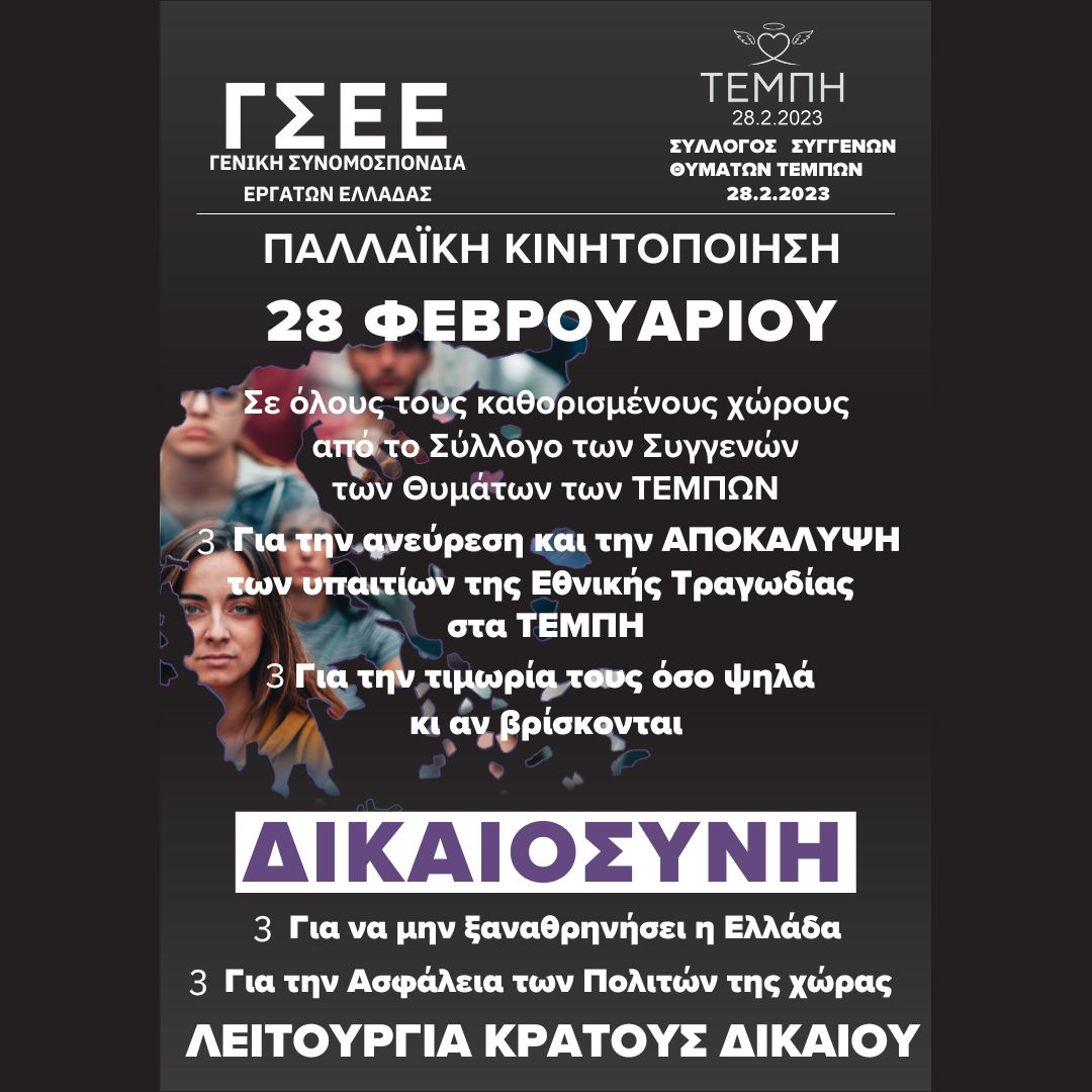Κάλεσμα συμμετοχής στην 24ωρη Παλλαϊκή Κινητοποίηση για τα Τέμπη