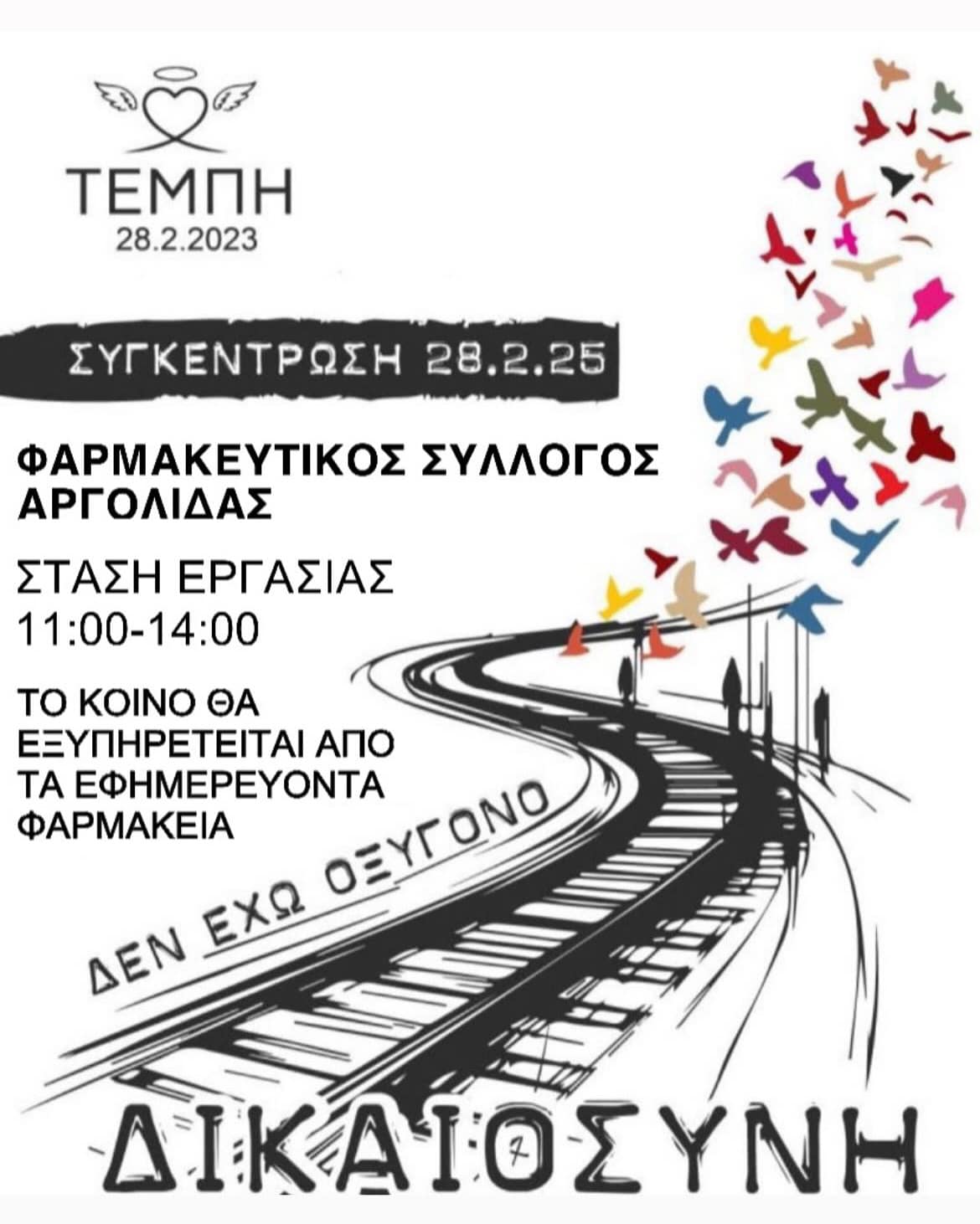 Ο Φαρμακευτικός Σύλλογος θα συμμετάσχει στην κινητοποίηση για δικαιοσύνη και αλήθεια την Παρασκευή 28 Φεβρουαρίου, με στάση εργασίας από τις 11:00 έως τις 13:00.