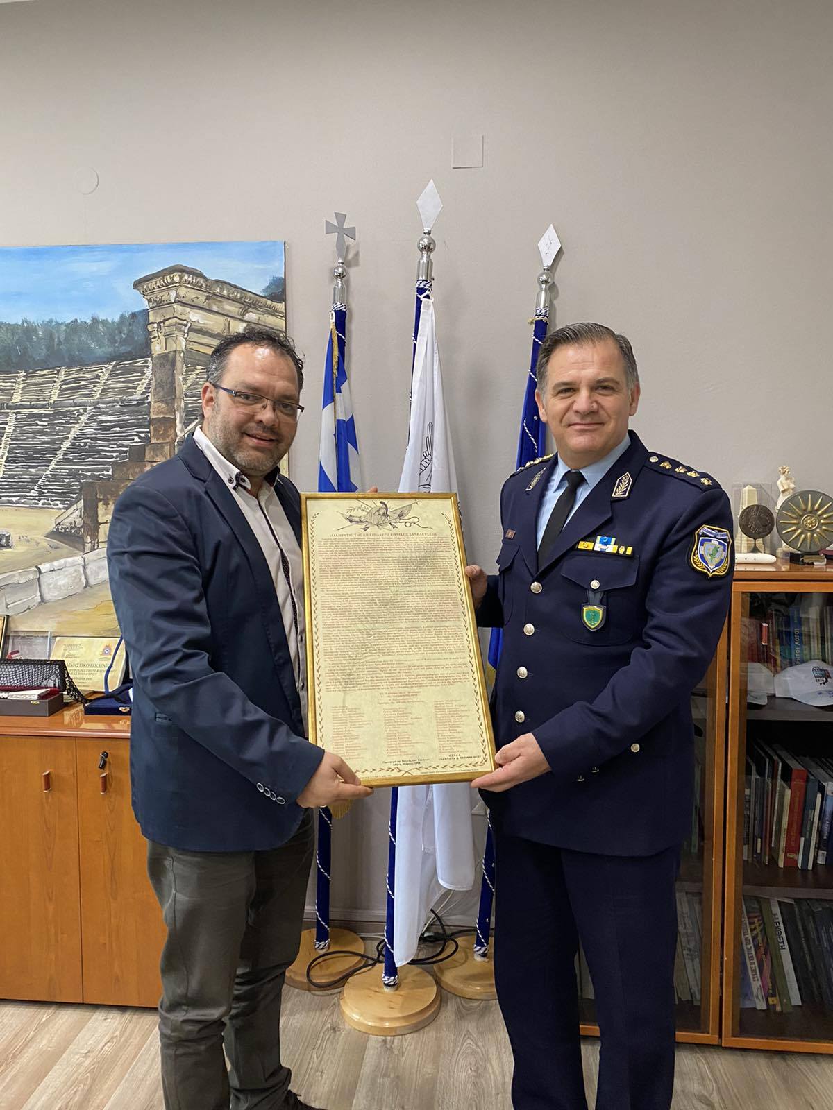 Συνάντηση με το νέο Διευθυντή της Αστυνομικής Διεύθυνσης Αργολίδας, Αστυνομικό Διευθυντή κ. Λαθουρή, είχε χθες στο δημαρχείο του Δήμου Επιδαύρου ο Δήμαρχος Επιδαύρου Αναστάσιος Χρόνης, παρουσία και του Διοικητή του Α.Τ. Επιδαύρου Αστυνόμου Α΄ κ. Κατσιγιάννη.
