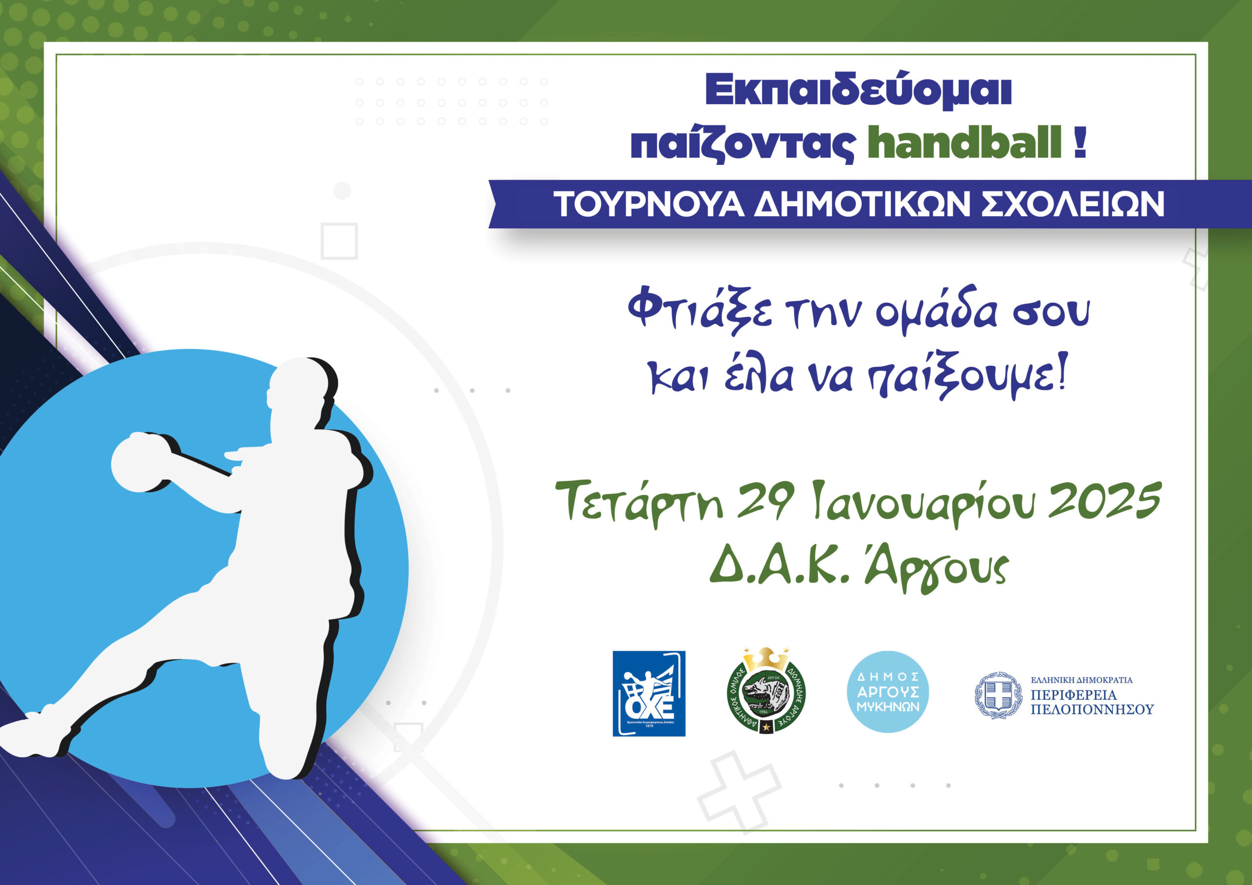 Σε ακόμη μία πρωτότυπη αθλητική δραστηριότητα προχωρά ο Δήμος Άργους – Μυκηνών, καθώς την Τετάρτη 29 Ιανουαρίου 2025, μαθητές και μαθήτριες των Δ’, Ε’ και ΣΤ’ τάξεων των Δημοτικών Σχολείων του Δήμου, θα έχουν τη δυνατότητα να ζήσουν από κοντά το άθλημα της Χειροσφαίρισης, συμμετέχοντας σε Τουρνουά Δημοτικών Σχολείων.