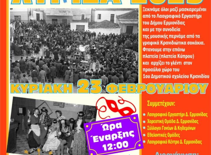 Ελάτε όλοι μαζί μασκαρεμένοι στο λαογραφικό εργαστήρι του Δήμου Ερμιονίδας και συνοδεύστε μας στη μουσική πομπή, περνώντας...