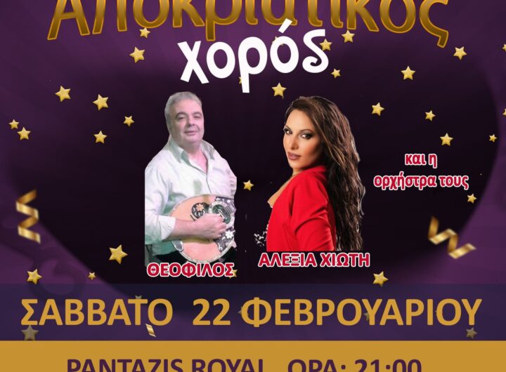 Το Σάββατο το βράδυ στις 22 Φεβρουαρίου στις 21:00 σας περιμένουμε στον Αποκριάτικο χορό μας στο Pantazis...