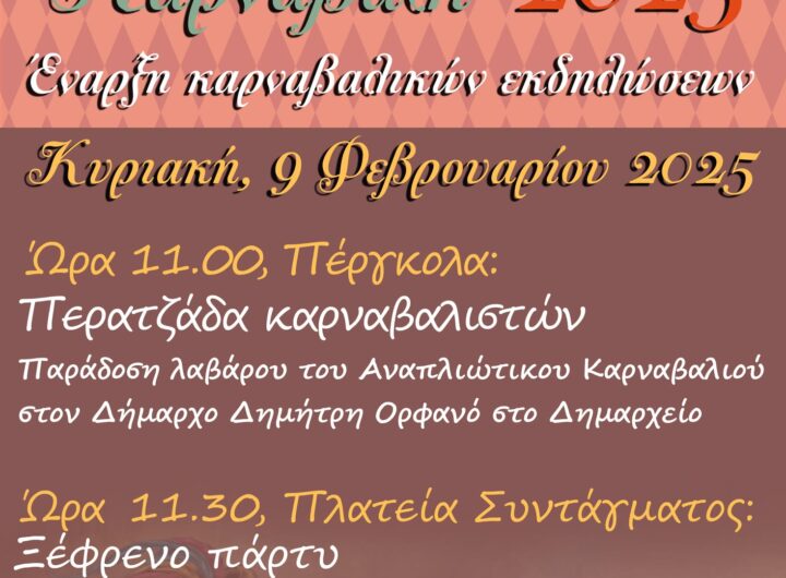 Την Κυριακή, 9 Φεβρουαρίου 2025, με το άνοιγμα του Τριωδίου ξεκινούν και οι καρναβαλικές εκδηλώσεις στον Δήμο...