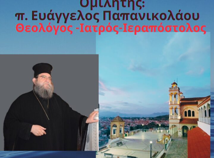 Το Σάββατο 29 Μαρτίου, στις 6:30 το απόγευμα, ο Ιερός Ναός Ευαγγελιστρίας Ναυπλίου διοργανώνει ομιλία με τον...