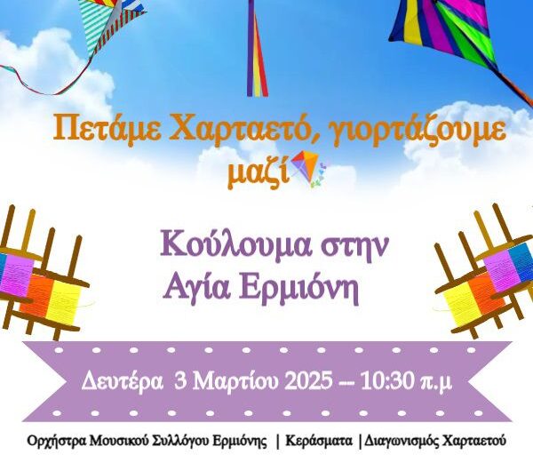Ελάτε να πετάξουμε χαρταετό και να γιορτάσουμε τα Κούλουμα στην Ερμιόνη τη Δευτέρα, 3 Μαρτίου! Γευτείτε τα...