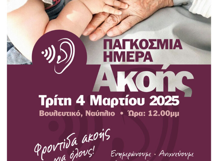 Ενημερωτική Ημερίδα για την Ακοή στο Ναύπλιο ΑΡΧΙΚΗ ΕΙΔΗΣΕΙΣ ΟΛΑ ΤΑ ΝΕΑ ΤΗΣ ΗΜΕΡΑΣ Ενημερωτική Ημερίδα για την Ακοή στο Ναύπλιο admin 20 Φεβρουαρίου 2025 Με αφορμή την Παγκόσμια Ημέρα Ακοής που γιορτάζεται κάθε 3 Μαρτίου, το Γ. Ν. Αργολίδας-Ν. Μ. Ναυπλίου...Read More